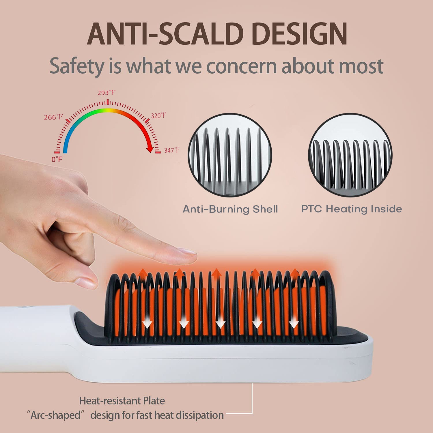 Product details of Dynamic Life Hair Straightener Heated Comb for Curling iron Hair| Anti-Scald Curly Straightening Brush| Ceramic Comb PTC 5 Ceramic Hair Straightener Brush Beard| Negative Ion Fast Heating Comb Straightener HQT-909B